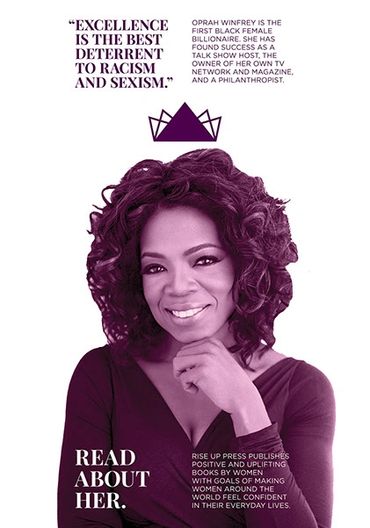 Brand identity poster series for a conceptual book publishing company, "Rise Up Press." The company publishes books written and designed by women that are inspired by great women. These posters advertise three different influential and inspiring women that would inspire the books of this publishing company.